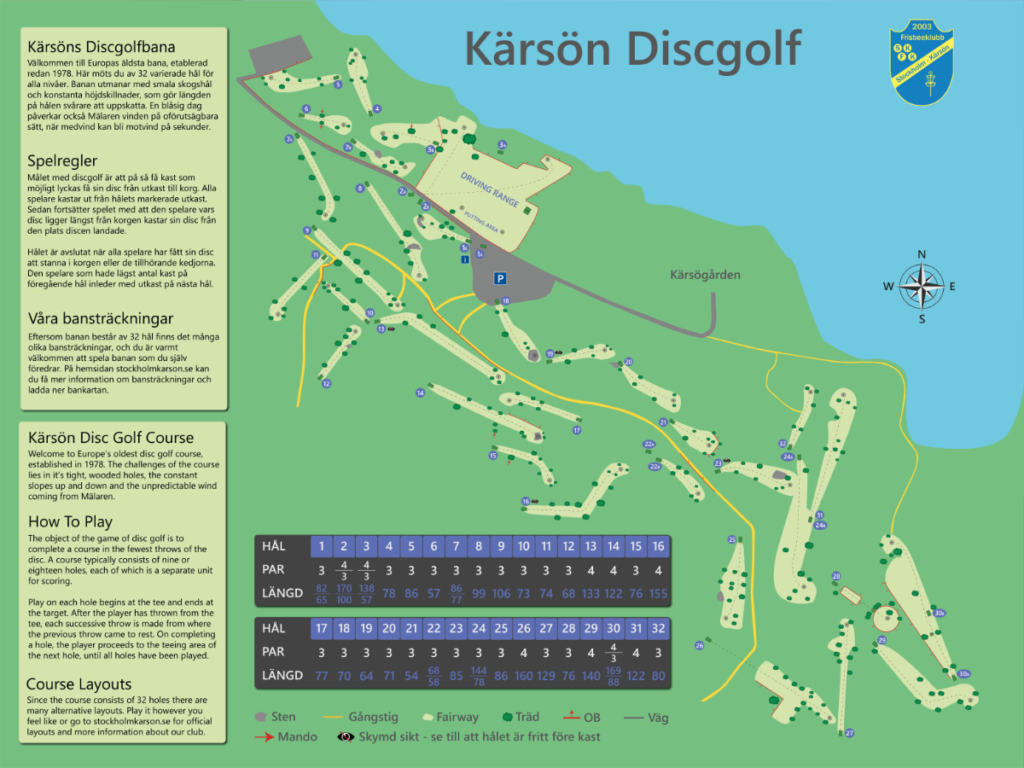 I dagsläget finns 32 hål på Kärsön, där 6 av hålen har alternativa utkast (pro tee).