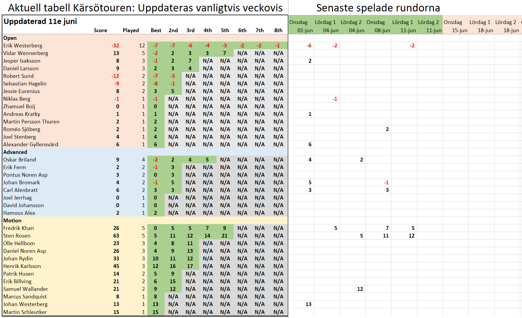 Anmälan på discgolfmetrix senast 12:00, samling 12:15, och spelstart 12:30.